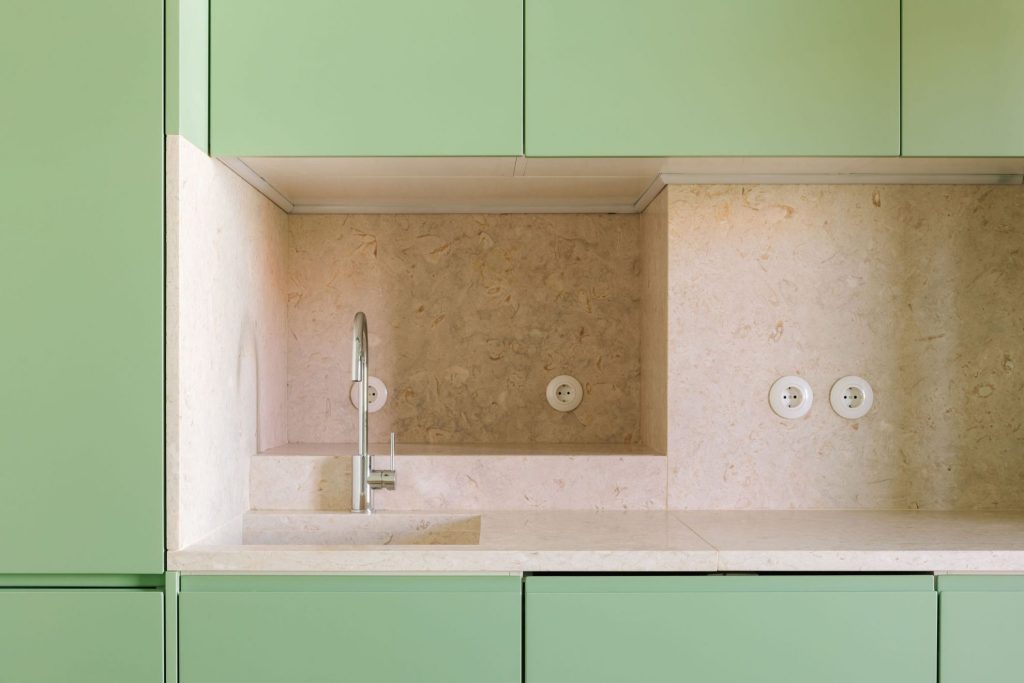 O Apartamento Latino Coelho, situado nas Avenidas Novas em Lisboa, mas poderia situar-se em qualquer outro “bairro típico que faz parte do imaginário de quem vive em Lisboa” – é um destes exemplos. O Arq. Manuel Tojal foi contratado para “melhor ar a funcionalidade” do edifício e proceder à sua renovação, mas a ideia, passou sempre por “manter a identidade” do espaço. É por isso, que a intervenção foi “pouco invasiva” e a escolha dos materiais utilizados – como a pedra de Lioz, “presente na grande maioria das cozinhas desta época” – “cuidada”. Alguns elementos, tais como trabalhados e tectos, foram igualmente preservados. Isto porque “o projecto trabalhou sempre a pré existência com delicadeza”.